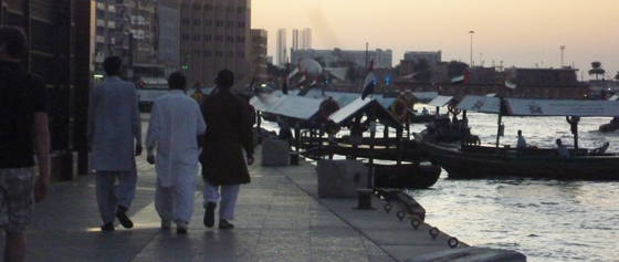ドバイといえば「世界一の高さのビル」やら「世界一の床面積を誇るモール」、など‘世界一シリーズ’がニュースとなる、やたらと人工的でゴージャスなイメージがあり、それはそうに違いないのだが、その一方で昔ながらと思われる光景にふれられる旧市街が存在する。その中のバスタキヤ地区の‘テキスタイル市場’と呼ばれる辺りをそぞろ歩いてみると、なにやら雰囲気が異様なことにすぐに気づいた。小さな店が軒を連ねているのだが、どの店をのぞいても電話番もお店番も見事なまでにすべて男性なのだ。目が合うと訝しげな表情で見返される。こちらが明らかに外国人だというのもあるが・・。そして歩を進めるにつれまたしても不思議な感覚に。歩行者の中にも女性はほぼ皆無。やっといた!と思うとサリーを着た(インド人←つまり外国人)けっこう年配の人。アラブ圏では女性はそもそもほとんど外出しないらしいとは聞いてはいたが、、。しかしいわゆるショッピングモールはというと、いろいろな民族の人々(もちろんアラブの人も含む)が余裕で闊歩している。現地の人たちは「出歩いて良いであろう場所」と「やめておいた方が良い場所」を区別しているのだろうか。(次のページへ)