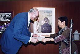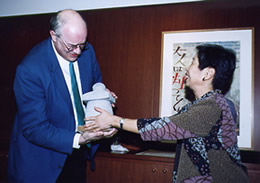 ヴァンクーヴァー、ロッテルダム、ロンドンなどの国際映画祭のプログラミング、英国の映画専門誌《サイト・アンド・サウンド》での評論活動などを通じて、今後とも日本映画の発展に尽力してくださることを期待して、ここに「川喜多賞」をお贈りしたいと思います。
