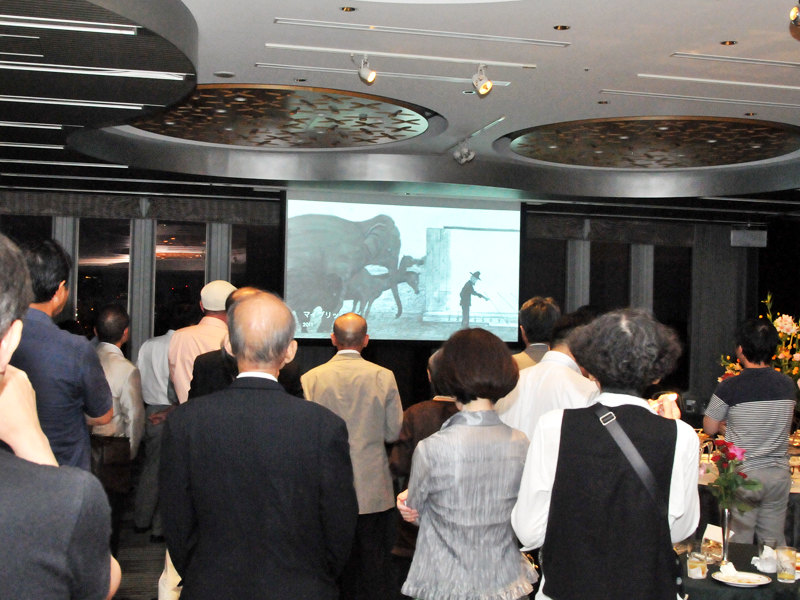 | 賞状を受ける山村氏 | 会の途中では、山村氏が編集された ご自身紹介のDVDを上映しました。 |