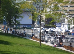 メインホテルやコンペティション会場がある映画祭のメインべニュー一帯が再開発工事の真最中で、景観的には少々残念な状態であったが、この一帯をモントリオール世界映画祭やジャズフェスティバルなどの文化的催しのメッカとするための工事とのこと。完成予想図を見る限りでは期待できそうである。この工事に伴い、従来から好評を博していた夜間の野外無料上映の会場がより広場らしい場所へ微妙に移動(といっても100メートルも離れていないが)した。 映画祭のゲストはほとんど皆、事務局やインダストリーセンターが入っているメインのホテルに宿泊しており連絡を取り合うのは非常に容易だった。また映画祭側のはからいで、毎日夕方のハッピーアワーにはホテルのバーの一角が映画祭ゲストに開放され、ゲスト同士の交流を促進する一助となった。