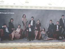 | 韓国のスターたちに囲まれた キム・ドンホ氏の巨大写真パネル |
