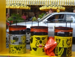 | ゴミ箱にも、映画祭のシンボルである豹が 可愛くペインティングされています。 |