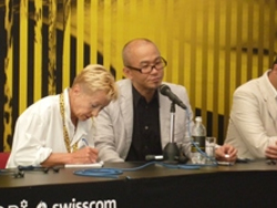 今年のロカルノ映画祭においては日本映画の存在感が抜きんでていた。まずは5月末に早々に公式発表された松本人志監督のミニ特集上映。監督作は最新作を含め計3本にとどまる監督が映画祭で‘特集’されるのは例外的である。同映画祭ディレクターのペール氏は数年前に同監督のデビュー作『大日本人』をカンヌ映画祭監督週間に招待したまさに「発見者」、同監督の才能への敬意は並々ならぬものがあるゆえに実現した企画といえる。『大日本人』『しんぼる』の上映に加え、ハイライトは8000人収容のピアッツァ・グランデでの新作『さや侍』上映。通常コメディは外国ではなかなか理解されにくいものであるが、今回のロカルノにおいては大好評を博し、松本監督も感激の面持ちであった。