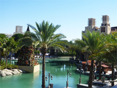 映画祭事務局、マーケット会場、メイン会場、ゲストの宿泊するホテルの一つはマディナ・ジュメイラという広大な複合コンプレックスのような「スーク」の中にあり、またゲストの多くが宿泊するもう一か所のホテル、ジュメイラ・ビーチ・ホテルもマディナ・ジュメイラとは人工運河でつながっており、ゴンドラ型小舟やバギーで移動(映画祭の出しているシャトルバスでも移動可能)、さながら‘ディズニーランド’の様相を呈している。このように映画祭参加にあたって必要な場所はある程度まとまって位置しているが、ほとんどの作品の上映場所となる大ショッピングモール、「モール・オブ・エミレーツ」内のシネマコンプレックスまではそれなりに距離がある。ちなみにこのモール内には人工のスキー場が入っていて、通年スキー客で賑わうらしい。