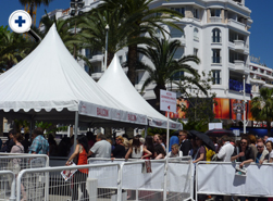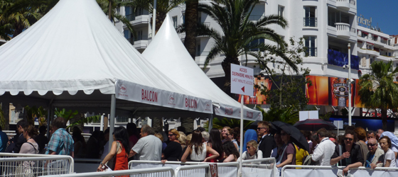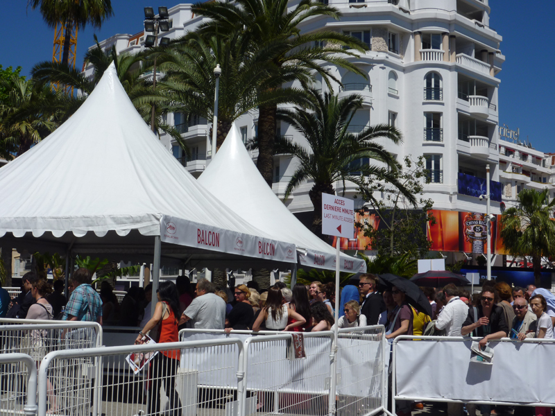 天候は今年も厳しかった。昨年よりはまだ少々良かったとはいえ、今年もかなりの悪天候に見舞われた。特に前半は雨づくし。そもそも雨向きにできていない町なだけに道路の水はけも悪く、庇も少なく大雨の時は悲惨である。ビーチでのパーティ、野外上映、それに開場を待つ際の列(たいていの場所には屋根がない)も雨には泣かされまくる。残念なことに是枝監督の『そして父になる』の公式上映日は雨のピーク日であった。一日中降りしきる雨の中を撮影や取材に応じ、レッドカーペットを歩き、と果敢に日程をこなしていたチームがお気の毒であった。後半は太陽がみえる日も多かったがそれでも肌寒く、結局、映画祭期間中一度も半袖姿にはならなかった。10年ほど前の写真をみると半袖やノースリーブ、サンダルといった姿でしっかり映っている。気候変動、なのだろうか・・・。