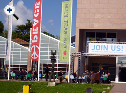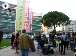 | メイン会場、テアトロ・ヌーヴォ前。 平日でも賑わいをみせる。 |