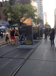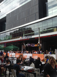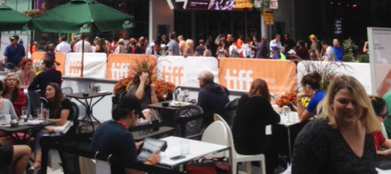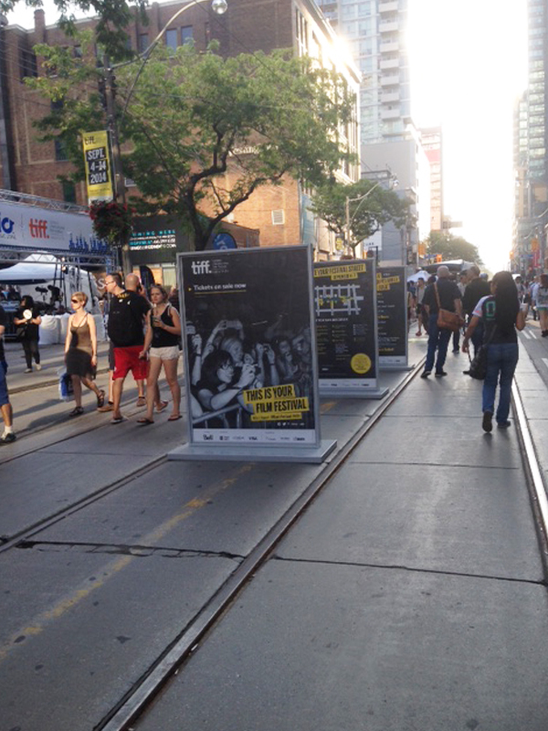 映画祭のメイン会場及び事務局となっているのがTIFF・ベル・ライトボックスで、2010年以来、トロント映画祭の象徴的存在となっている。最新の上映環境を備えた5スクリーン、レストランやミュージアムショップ、図書館も擁する近代的で快適な建物である。かつて「シネマテーク・オンタリオ」と称したTIFFシネマテークも同ビル内にあり、年間を通して常に各種の上映が行われている。同館ではトロント映画祭の他、子ども映画祭、新世代映画祭なども催されており、まさにトロントの映画産業の中心となっているとのことである。トロント映画祭はこのライトボックスを中心に、ダウンタウン内の数か所の映画館(趣きのある上映館も多い)で繰り広げられる。映画祭会期中の最初の週末4−7日は、同館前の通り、キングストリート・ウエストは歩行者天国となり、各種のイベントが繰り広げられ、深夜まで大勢の人が行き交い、祝祭感がより高まっていた。この週末歩行者天国は今年が初めての試みだったとのことであるが、そのたいへんな盛り上がりをみるに、次回以降も続行は確実と思われる。