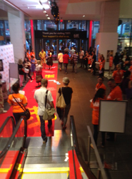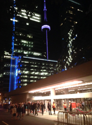 | レッドカーペットが 敷かれる会場のひとつ。 ロイ・トンプソンホール前。 CNタワーを背に。 |