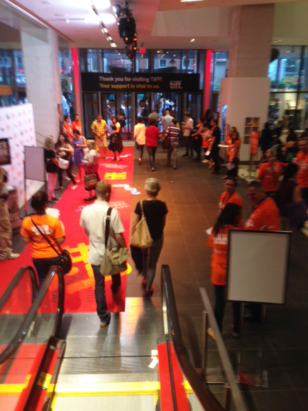トロント映画祭では観客の投票によって決定する「The People’s Choice Award」(観客賞)を設けており、近年は同賞に輝いた作品の多くが翌年のアカデミー賞受賞作品となっている。これが同映画祭が‘アカデミー賞の前哨戦’といわれるゆえんである。カナダ映画部門に関してのみは正規の審査員を設けており、また国際批評家連盟賞など外部団体の賞も存在する。が、最高賞は「観客賞」。トロント映画祭は創設時から一貫して観客重視の姿勢を貫いてきた。地元の映画ファンのコミュニティを築き、地元の映画業界の活性化に寄与することを目的とし、あくまでも「観客」の方を向いて運営されてきた。その志はしっかり市民に届いており、決して安いとはいえないチケット代にも関わらず(*大人1枚24カナダドル;複数枚の購入の場合や学生、シニア等には割引あり)上映館は常に楽しげな市民でごった返している。ボランティアスタッフも大勢、きびきびと楽しそうに働いていた。ボランティアは希望者多数のため、けっこうシビアな選抜が行われるとのことである。なかでもシニア世代のボランティアの方がかなり多いのには驚きを禁じ得なかった。どこの映画祭でもほぼ若者で占められているのが常だが、このあたりにも街の成熟度を垣間見た気がした。