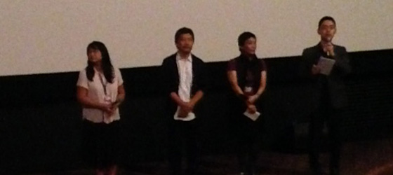 | 質疑応答に臨む海南監督(左端) 是枝監督(左から二人目) |