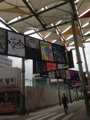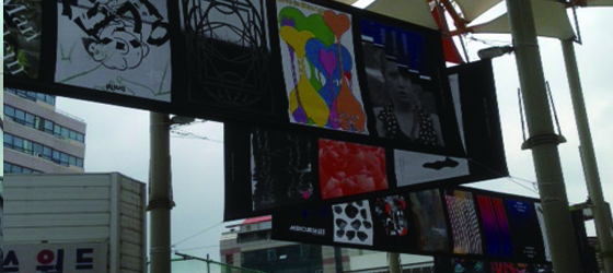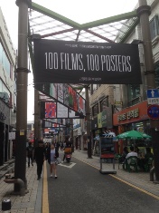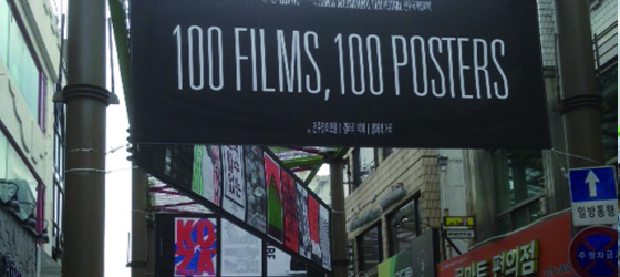 なかでも道行く人々の目を引いたのは100作品のポスター’展。韓国を代表するグラフィックデザイナーたちが今回のチョンジュ映画祭公式出品作品のうち100作品の図柄を独自にデザイン、それらがバナーとなってシネマストリートを飾る様は壮観であった。