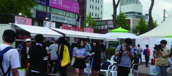 | チョンジュ映画祭広場に 集う人々 |