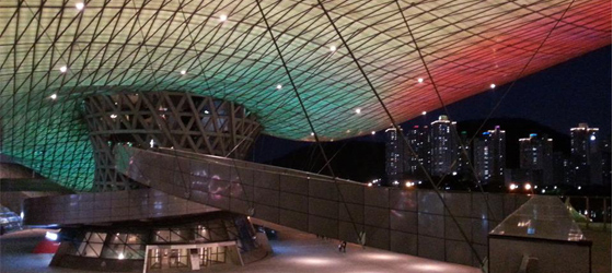 メイン会場「釜山市シネマセンター」の夜の様子 |