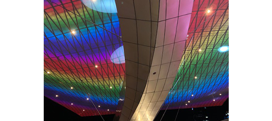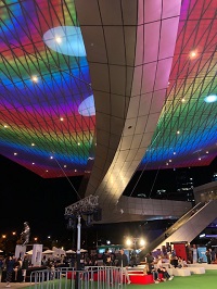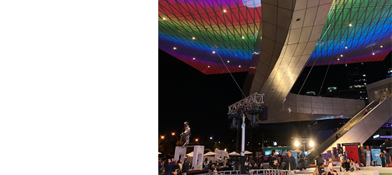 | 夜の釜山シネマセンター。 幻想的にライトアップされる。 |