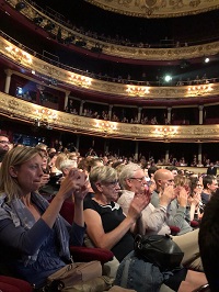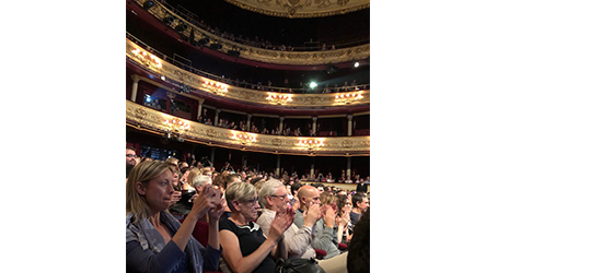 | 盛大な拍手で是枝監督の受賞を祝う 観客の人々 |