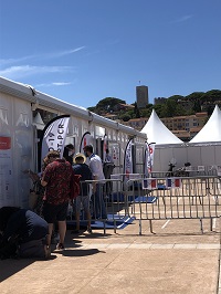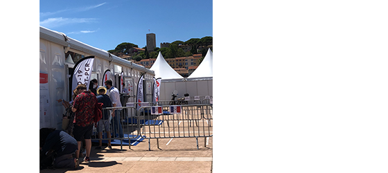 映画祭のPCR検査センターは映画祭メイン施設である<パレ>近くに設置され、非常に効率の良い施設であった。まず検査時間をスマホかPCで予約し、検査場に向かう。場内には十分な数の(そしててきぱきと、感じが良い)スタッフが常備しており、検査結果は約6時間後に判明し、スマートフォン等に通知され、その結果を映画祭施設への入場の際に提示するという仕組み。フランス人・外国人の別なく全員無料だったのもありがたかった。印刷した紙での提示ももちろん可能ではあるが、なにかにつけスマートフォンが不可欠だと痛感させられた。また、今年から映画祭での映画鑑賞チケットが電子チケットになった。以前からチケットの予約はオンラインで行っていたが、一昨年までは紙のチケットを発券する必要があった。が、今回からはスマートフォンでQRコードを提示すれば良い(印刷してもQRコードがあればもちろんそれで良し)。招待チケットなど、紙のチケットも存在することはするがかなり限定的であった。これまでは行列して順番に入場であった「ある視点」部門等に関しても、事前のオンライン予約となっていた。行列という’密’を防ぐためであろう。炎天下に延々並ぶのはきついものがあったので、この変化は歓迎である。