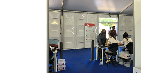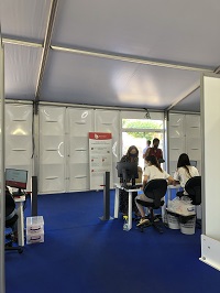 | 係員たちが丹念に‘陰性証明’’ワクチン接種済み証明‘をチェック。 |