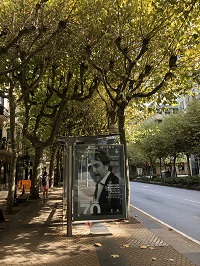 | 映画祭ポスターが飾られているバス停 |