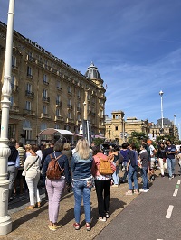 サン・セバスチャン市の正式名称はDonostia-San Sebastian(ドノスティア=サン・セバスティアン)。前者がバスク語、後者がスペイン語で、「ビスケー湾の真珠」「カンタブリア海の真珠」との意味だという。文化都市として年間を通してさまざまな文化イベントが繰り広げられる同市ではサン・セバスチャン映画祭、ファンタスティック映画祭など4つの映画祭が開催され、シネクラブでは毎週上映会が行われており、市民たちが日常的に映画に親しむ素地が整っている。その中でもサン・セバスチャン映画祭は市(及び地域)の最大の映画イベントで、人口約18万8000人の街に、2018年は会期中に17万5000人が訪れた。1953年の設立以来、困難な状況にある時でも一度も開催を見送ることなく続け、今回で70回目を数えた。予算の約半分をサン・セバスチャン市やバスク州などの公的機関が拠出し、残り半分を民間のスポンサーやチケット販売に負っている。世界屈指の美食の町として知られるサン・セバスチャンには、食が主目的の観光客も多数訪れる。特に「バル」の充実は有名であるが、コロナ禍以降は客がそれぞれピンチョスを取ってゆく形式ではなくなり、少々風情が失われた感は否めないが、それでも各バルは昼夜を問わず盛況で、観光業も全体的に順調に回復しているとのことである。