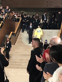 | 『百花』上映後、観客たちの拍手の中、 退出する川村元気監督・原田美枝子氏 |