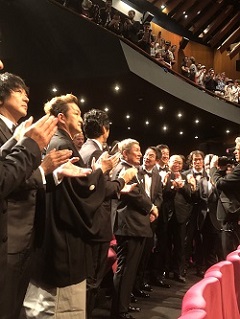 | 北野武監督と「首」出演俳優。 大歓声に包まれた。 |