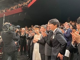 | スタンディングオベーションにこたえる ヴェンダース監督 |