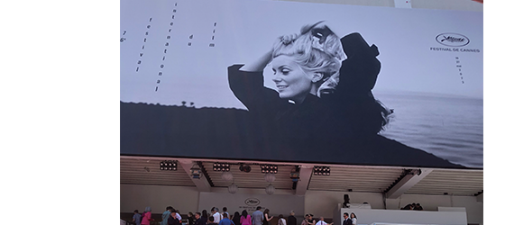公式ポスターは女優のカトリーヌ・ドヌーヴの、若き日の写真をモチーフとしたものであった。使用された写真は1968年公開のフランス映画『別離』の撮影中に、サントロペ近郊のパンプローヌ海岸で撮られた一枚。モノクロのシックなポスターが、カンヌの街を映画祭モードに包んでいた。ドヌーヴは開会式のレッド・カーペットにも参加していた。フランス映画界を代表する俳優としての存在感は健在である。